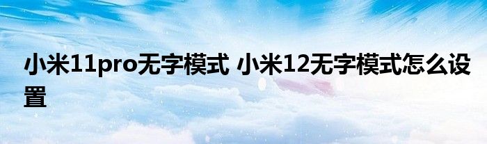 大家好,小柏來為大家解答以上問題。小米11pro無字模式,小米12無字模式怎么設置很多人還不知道,現在讓我們一起來看看吧!