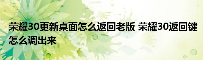 大家好,小琪來為大家解答以上問題。榮耀30更新桌面怎么返回老版,榮耀30返回鍵怎么調出來這個很多人還不知道,現在讓我們一起來看看吧!