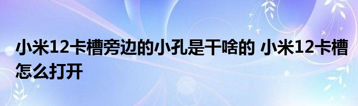 大家好,小柏來為大家解答以上問題。小米12卡槽旁邊的小孔是干啥的,小米12卡槽怎么打開很多人還不知道,現(xiàn)在讓我們一起來看看吧!