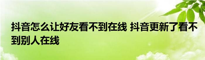 大家好,小琪來為大家解答以上問題。抖音怎么讓好友看不到在線,抖音更新了看不到別人在線這個很多人還不知道,現在讓我們一起來看看吧!
