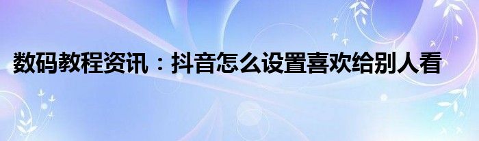 現在各種各樣的數碼設備在我們的生活當中幾乎可以說是無處不在,平時我們使用的手機,IP,電腦等等這些都屬于數碼設備,那么這些數碼設備當中會存在著很多的功能,當然在我們使用的過程當中自然也會出現說各種的問題,那么我們如何才能去解決這些問題以及使用好這些功能呢?這個時候就需要我們去了解這些功能及問題的解決方法,今天小編就來給大家分享下,關于抖音怎么設置喜歡給別人看方面的問題及功能的詳細內容,希望下面小編為大家分享的內容對大家來說有一定的幫助哦。抖音怎么設置喜歡給別人看