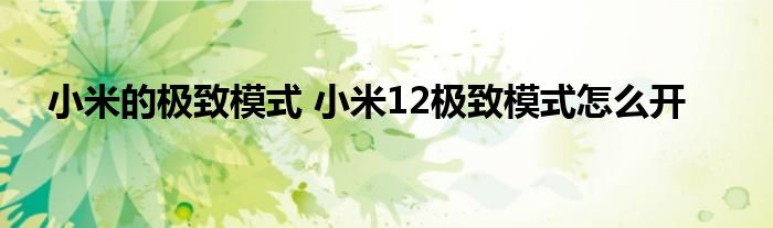 大家好,小柏來為大家解答以上問題。小米的極致模式,小米12極致模式怎么開很多人還不知道,現在讓我們一起來看看吧!