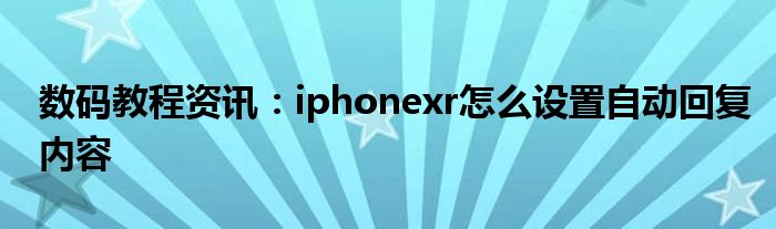 現(xiàn)在各種各樣的數(shù)碼設(shè)備在我們的生活當(dāng)中幾乎可以說是無處不在,平時我們使用的手機,IP,電腦等等這些都屬于數(shù)碼設(shè)備,那么這些數(shù)碼設(shè)備當(dāng)中會存在著很多的功能,當(dāng)然在我們使用的過程當(dāng)中自然也會出現(xiàn)說各種的問題,那么我們?nèi)绾尾拍苋ソ鉀Q這些問題以及使用好這些功能呢?這個時候就需要我們?nèi)チ私膺@些功能及問題的解決方法,今天小編就來給大家分享下,關(guān)于iphonexr怎么設(shè)置自動回復(fù)內(nèi)容方面的問題及功能的詳細(xì)內(nèi)容,希望下面小編為大家分享的內(nèi)容對大家來說有一定的幫助哦。iphonexr怎么設(shè)置自動回復(fù)內(nèi)容
