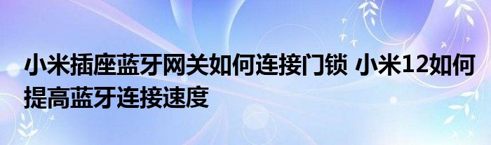大家好,小柏來為大家解答以上問題。小米插座藍牙網關如何連接門鎖,小米12如何提高藍牙連接速度很多人還不知道,現在讓我們一起來看看吧!