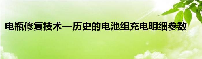 大家好,小科來為大家解答以上問題。電瓶修復技術—歷史的電池組充電明細參數這個很多人還不知道,現在讓我們一起來看看吧!