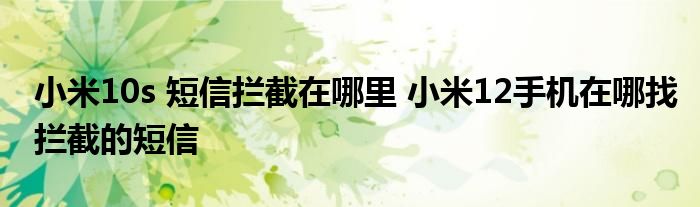 大家好,小柏來為大家解答以上問題。小米10s,短信攔截在哪里,小米12手機在哪找攔截的短信很多人還不知道,現在讓我們一起來看看吧!