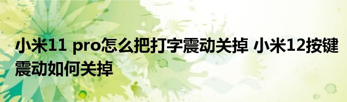 大家好,小柏來為大家解答以上問題。小米11,pro怎么把打字震動關掉,小米12按鍵震動如何關掉很多人還不知道,現在讓我們一起來看看吧!