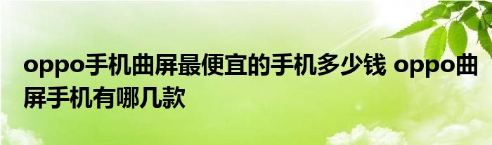 大家好,小詹來為大家解答以上問題。oppo手機(jī)曲屏最便宜的手機(jī)多少錢,oppo曲屏手機(jī)有哪幾款很多人還不知道,現(xiàn)在讓我們一起來看看吧!