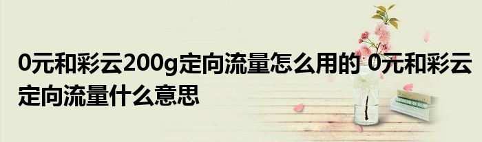 大家好,小詹來為大家解答以上問題。0元和彩云200g定向流量怎么用的,0元和彩云定向流量什么意思很多人還不知道,現在讓我們一起來看看吧!