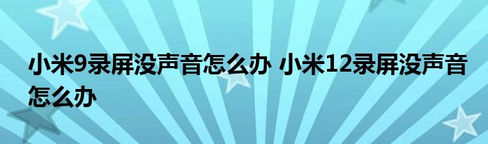 大家好,小柏來為大家解答以上問題。小米9錄屏沒聲音怎么辦,小米12錄屏沒聲音怎么辦很多人還不知道,現在讓我們一起來看看吧!