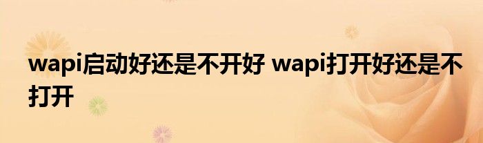 大家好,小詹來為大家解答以上問題。wapi啟動好還是不開好,wapi打開好還是不打開很多人還不知道,現在讓我們一起來看看吧!