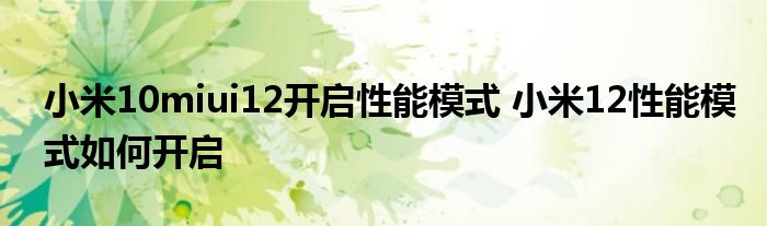 大家好,小柏來為大家解答以上問題。小米10miui12開啟性能模式,小米12性能模式如何開啟很多人還不知道,現在讓我們一起來看看吧!