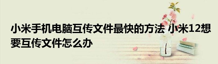 大家好,小柏來為大家解答以上問題。小米手機電腦互傳文件最快的方法,小米12想要互傳文件怎么辦很多人還不知道,現在讓我們一起來看看吧!