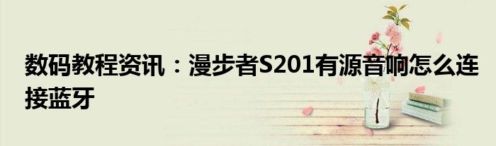 現(xiàn)在各種各樣的數(shù)碼設(shè)備在我們的生活當(dāng)中幾乎可以說是無處不在,平時(shí)我們使用的手機(jī),IP,電腦等等這些都屬于數(shù)碼設(shè)備,那么這些數(shù)碼設(shè)備當(dāng)中會(huì)存在著很多的功能,當(dāng)然在我們使用的過程當(dāng)中自然也會(huì)出現(xiàn)說各種的問題,那么我們?nèi)绾尾拍苋ソ鉀Q這些問題以及使用好這些功能呢?這個(gè)時(shí)候就需要我們?nèi)チ私膺@些功能及問題的解決方法,今天小編就來給大家分享下,關(guān)于漫步者S201有源音響怎么連接藍(lán)牙方面的問題及功能的詳細(xì)內(nèi)容,希望下面小編為大家分享的內(nèi)容對(duì)大家來說有一定的幫助哦。漫步者S201有源音響怎么連接藍(lán)牙