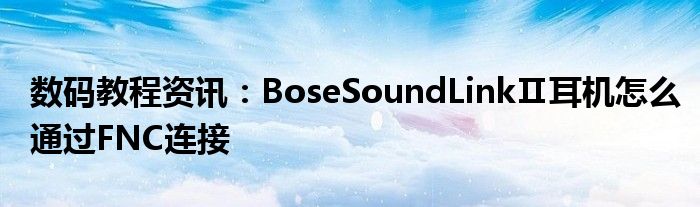 小編給大家帶來的關于“Bose SoundLink Ⅱ耳機怎么通過FNC連接”的全部內容了,更多精彩資訊請關注