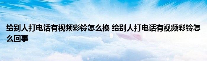 大家好,小詹來為大家解答以上問題。給別人打電話有視頻彩鈴怎么換,給別人打電話有視頻彩鈴怎么回事很多人還不知道,現(xiàn)在讓我們一起來看看吧!
