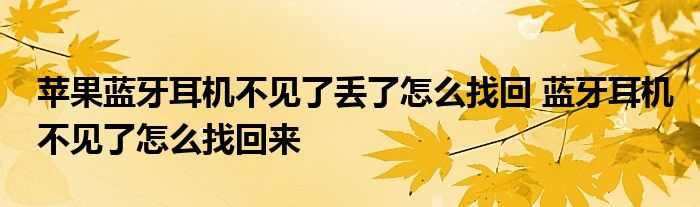 大家好,小琪來為大家解答以上問題。蘋果藍牙耳機不見了丟了怎么找回,藍牙耳機不見了怎么找回來這個很多人還不知道,現在讓我們一起來看看吧!