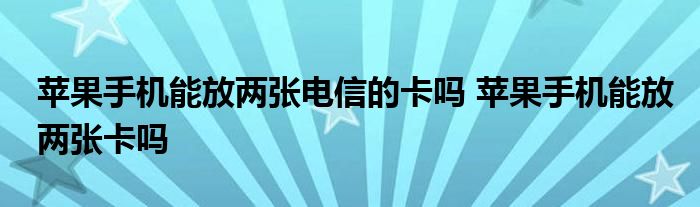 大家好,小詹來為大家解答以上問題。蘋果手機能放兩張電信的卡嗎,蘋果手機能放兩張卡嗎很多人還不知道,現在讓我們一起來看看吧!