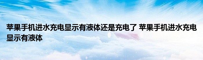 大家好,小詹來為大家解答以上問題。蘋果手機進水充電顯示有液體還是充電了,蘋果手機進水充電顯示有液體很多人還不知道,現(xiàn)在讓我們一起來看看吧!