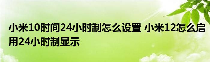 大家好,小柏來為大家解答以上問題。小米10時間24小時制怎么設置,小米12怎么啟用24小時制顯示很多人還不知道,現在讓我們一起來看看吧!