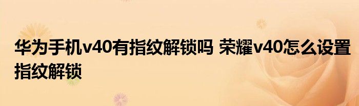 大家好,小詹來為大家解答以上問題。華為手機v40有指紋解鎖嗎,榮耀v40怎么設置指紋解鎖很多人還不知道,現在讓我們一起來看看吧!