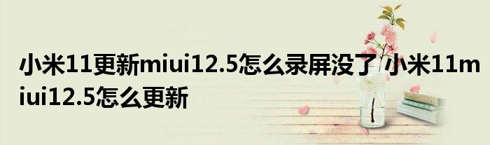 大家好,小詹來為大家解答以上問題。小米11更新miui12.5怎么錄屏沒了,小米11miui12.5怎么更新很多人還不知道,現在讓我們一起來看看吧!