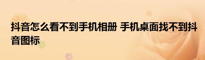 大家好,小琪來為大家解答以上問題。抖音怎么看不到手機相冊,手機桌面找不到抖音圖標這個很多人還不知道,現(xiàn)在讓我們一起來看看吧!