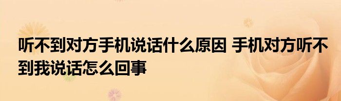 大家好,小詹來為大家解答以上問題。聽不到對方手機說話什么原因,手機對方聽不到我說話怎么回事很多人還不知道,現在讓我們一起來看看吧!