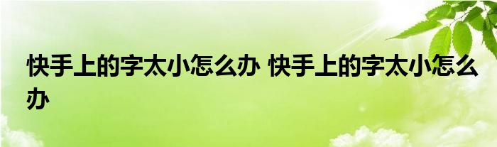 大家好,小琪來為大家解答以上問題。快手上的字太小怎么辦,快手上的字太小怎么辦這個很多人還不知道,現在讓我們一起來看看吧!