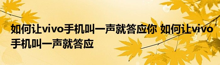 大家好,小詹來為大家解答以上問題。如何讓vivo手機(jī)叫一聲就答應(yīng)你,如何讓vivo手機(jī)叫一聲就答應(yīng)很多人還不知道,現(xiàn)在讓我們一起來看看吧!