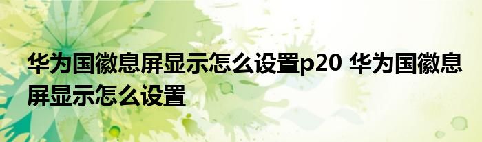 大家好,小詹來為大家解答以上問題。華為國徽息屏顯示怎么設置p20,華為國徽息屏顯示怎么設置很多人還不知道,現在讓我們一起來看看吧!
