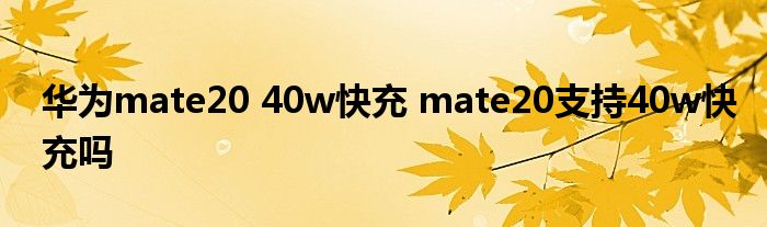 大家好,小琪來為大家解答以上問題。華為mate20 40w快充,mate20支持40w快充嗎這個很多人還不知道,現在讓我們一起來看看吧!