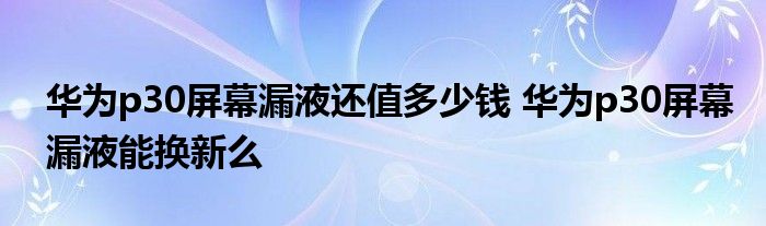 大家好,小琪來為大家解答以上問題。華為p30屏幕漏液還值多少錢,華為p30屏幕漏液能換新么這個很多人還不知道,現(xiàn)在讓我們一起來看看吧!