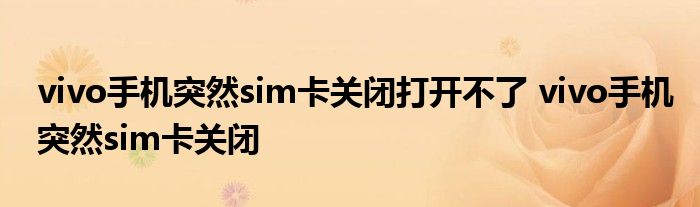 大家好,小詹來為大家解答以上問題。vivo手機突然sim卡關閉打開不了,vivo手機突然sim卡關閉很多人還不知道,現在讓我們一起來看看吧!