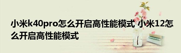 大家好,小柏來為大家解答以上問題。小米k40pro怎么開啟高性能模式,小米12怎么開啟高性能模式很多人還不知道,現在讓我們一起來看看吧!