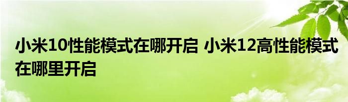 大家好,小柏來(lái)為大家解答以上問(wèn)題。小米10性能模式在哪開(kāi)啟,小米12高性能模式在哪里開(kāi)啟很多人還不知道,現(xiàn)在讓我們一起來(lái)看看吧!