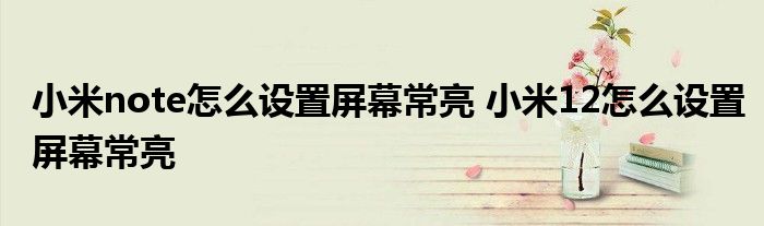 大家好,小柏來為大家解答以上問題。小米note怎么設置屏幕常亮,小米12怎么設置屏幕常亮很多人還不知道,現在讓我們一起來看看吧!
