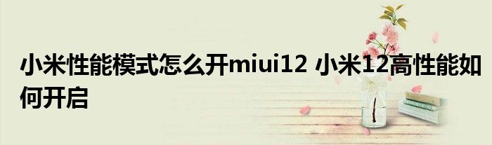 大家好,小柏來為大家解答以上問題。小米性能模式怎么開miui12,小米12高性能如何開啟很多人還不知道,現在讓我們一起來看看吧!