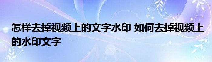 大家好,小琪來(lái)為大家解答以上問(wèn)題。怎樣去掉視頻上的文字水印,如何去掉視頻上的水印文字這個(gè)很多人還不知道,現(xiàn)在讓我們一起來(lái)看看吧!
