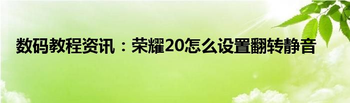 現(xiàn)在各種各樣的數(shù)碼設(shè)備在我們的生活當(dāng)中幾乎可以說是無處不在,平時我們使用的手機(jī),IP,電腦等等這些都屬于數(shù)碼設(shè)備,那么這些數(shù)碼設(shè)備當(dāng)中會存在著很多的功能,當(dāng)然在我們使用的過程當(dāng)中自然也會出現(xiàn)說各種的問題,那么我們?nèi)绾尾拍苋ソ鉀Q這些問題以及使用好這些功能呢?這個時候就需要我們?nèi)チ私膺@些功能及問題的解決方法,今天小編就來給大家分享下,關(guān)于榮耀20怎么設(shè)置翻轉(zhuǎn)靜音方面的問題及功能的詳細(xì)內(nèi)容,希望下面小編為大家分享的內(nèi)容對大家來說有一定的幫助哦。榮耀20怎么設(shè)置翻轉(zhuǎn)靜音?