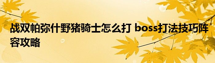 在戰雙帕彌什里,野豬騎士主打野豬突進,也就是沖刺傷害,那么怎么打比較輕松呢?下面就為大家帶來詳細的攻略介紹,一起來看看吧!