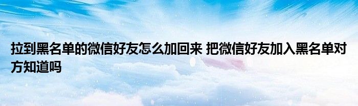 大家好,小琪來為大家解答以上問題。拉到黑名單的微信好友怎么加回來,把微信好友加入黑名單對方知道嗎這個很多人還不知道,現(xiàn)在讓我們一起來看看吧!
