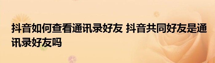 大家好,小琪來為大家解答以上問題。抖音如何查看通訊錄好友,抖音共同好友是通訊錄好友嗎這個很多人還不知道,現在讓我們一起來看看吧!