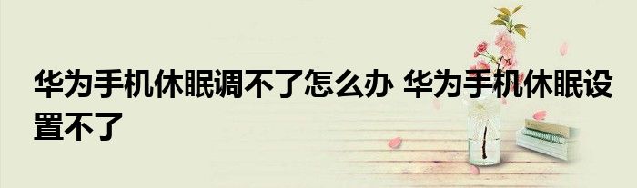 大家好,小詹來為大家解答以上問題。華為手機休眠調不了怎么辦,華為手機休眠設置不了很多人還不知道,現在讓我們一起來看看吧!