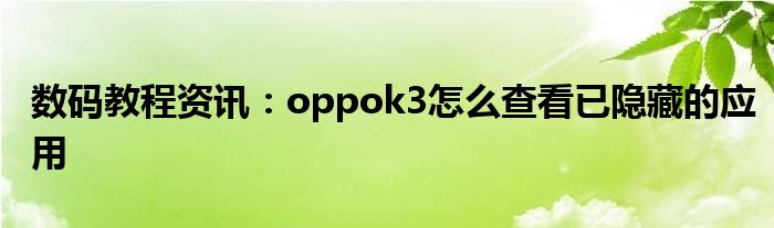 現在各種各樣的數碼設備在我們的生活當中幾乎可以說是無處不在,平時我們使用的手機,IP,電腦等等這些都屬于數碼設備,那么這些數碼設備當中會存在著很多的功能,當然在我們使用的過程當中自然也會出現說各種的問題,那么我們如何才能去解決這些問題以及使用好這些功能呢?這個時候就需要我們去了解這些功能及問題的解決方法,今天小編就來給大家分享下,關于oppok3怎么查看已隱藏的應用方面的問題及功能的詳細內容,希望下面小編為大家分享的內容對大家來說有一定的幫助哦。oppok3怎么查看已隱藏的應用