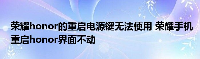 大家好,小詹來為大家解答以上問題。榮耀honor的重啟電源鍵無法使用,榮耀手機重啟honor界面不動很多人還不知道,現在讓我們一起來看看吧!