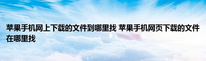大家好,小詹來為大家解答以上問題。蘋果手機網上下載的文件到哪里找,蘋果手機網頁下載的文件在哪里找很多人還不知道,現在讓我們一起來看看吧!