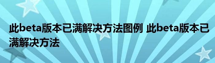 大家好,小詹來為大家解答以上問題。此beta版本已滿解決方法圖例,此beta版本已滿解決方法很多人還不知道,現(xiàn)在讓我們一起來看看吧!
