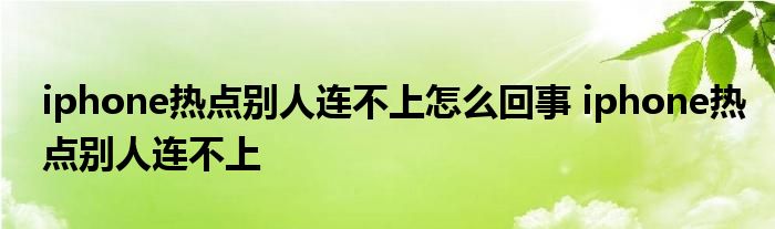 大家好,小詹來為大家解答以上問題。iphone熱點別人連不上怎么回事,iphone熱點別人連不上很多人還不知道,現在讓我們一起來看看吧!