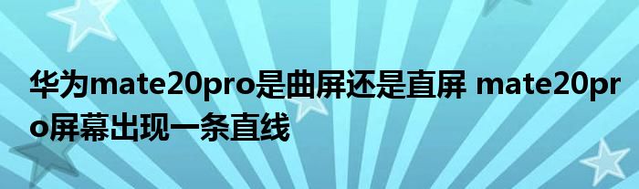 大家好,小琪來為大家解答以上問題。華為mate20pro是曲屏還是直屏,mate20pro屏幕出現一條直線這個很多人還不知道,現在讓我們一起來看看吧!